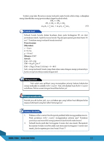 bentuk yang lain. Besarnya energi mekanik suatu benda selalu tetap, sedangkan