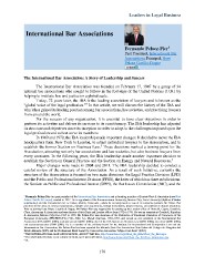 “global voice of the legal profession.”2 In this article, we will discuss the history of the IBA and