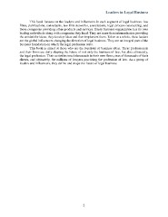 This book focuses on the leaders and influencers in each segment of legal business: law