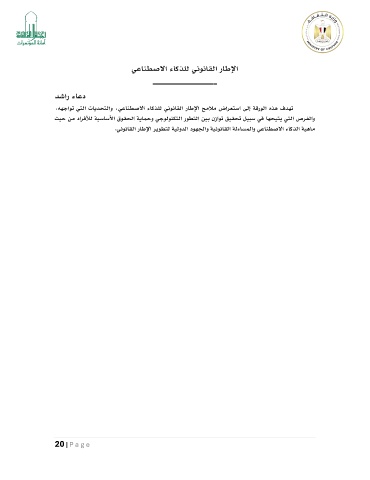 تهدف هذه الورقة إلى استعراض ملامح الإطار القانوني للذكاء الاصطناعي ،والتحديات التي تواجهه،