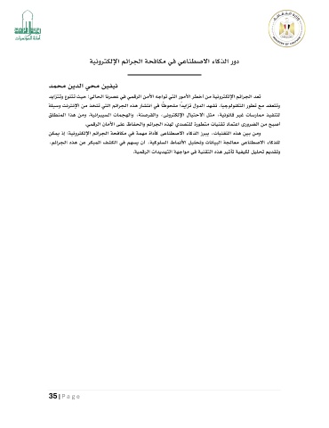 ومن بين هذه التقنيات ،يبرز الذكاء الاصطناعى كأداة مهمة في مكافحة الجرائم الإلكترونية؛ إذ يمكن