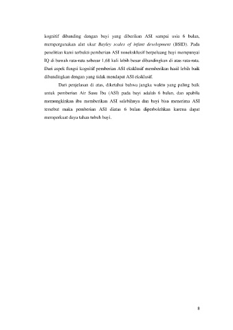 kognitif dibanding dengan bayi yang diberikan ASI sampai usia 6 bulan,