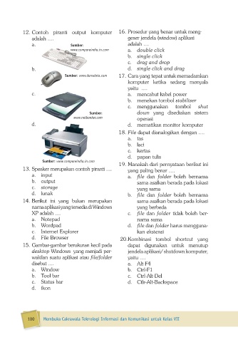 12. Contoh piranti output komputer 16. Prosedur yang benar untuk meng-