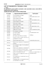 LIST OF DIAGNOSTIC TROUBLE CODE