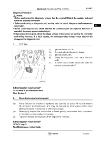 • Before performing the diagnosis, ensure that the engineECUand the canister solenoid