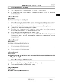 No> Repair or change the fuel system parts or circuits if the fuel pressure is lower than 400