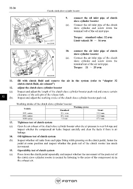 32 (b). Inspect and adjust the working stroke of the clutch slave cylinder booster push rod.