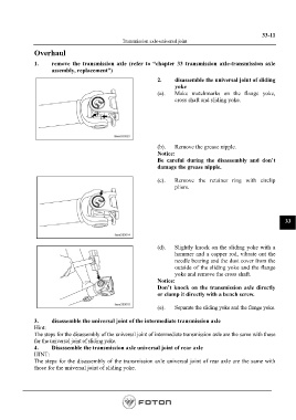 The steps for the disassembly of the transmission axle universal joint of rear axle are the same with