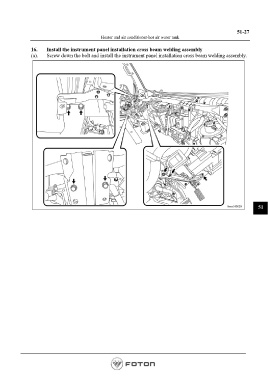 51-27 Heater and air conditioner-hot air water tank 16. Install the instrument panel installation cross beam welding assembly (a). Screw down the bolt and install the instrument panel installation cross beam welding assembly. 51 Page 1119