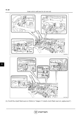 51-28 Heater and air conditioner-hot air water tank 51 (b). Install the clutch fluid reservoir (Refer to “chapter 32 clutch-clutch fluid reservoir, replacement”) Page 1120
