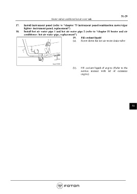 18. Install hot air water pipe 1 and hot air water pipe 2 (refer to “chapter 51 heater and air