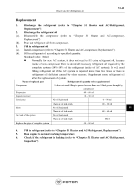 4. Fill in refrigerant (refer to “Chapter 51 Heater and AC-Refrigerant, Replacement”)