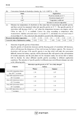 (b). Conversion formula of electrolyte density: d 25 = dt + 0.007 (t - 25)