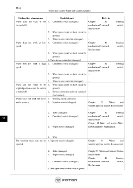 works properly 2. Injection nozzle (clogged) Chapter 55 Wiper and