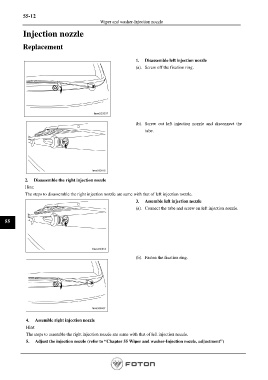 5. Adjust the injection nozzle (refer to “Chapter 55 Wiper and washer-Injection nozzle, adjustment”)
