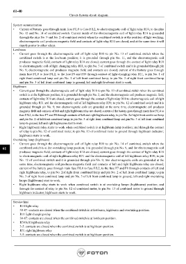 • Current goes through the electromagnetic coil of light relay R10 to pin No. 14 of combined switch when the