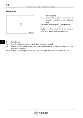 Repair the horn button or replace the steering wheel assembly if it is not accord to the standard.