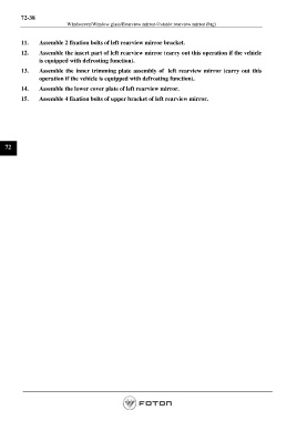 15. Assemble 4 fixation bolts of upper bracket of left rearview mirror.