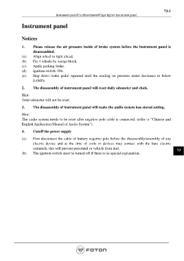 3. The disassembly of instrument panel will make the audio system lose stored setting.