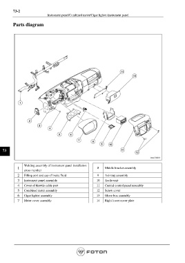 2 Filling port and cap of brake fluid 9 Ash tray assembly