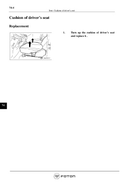 74-4 Seat- Cushion of driver’s seat Cushion of driver’s seat Replacement 1. Turn up the cushion of driver’s seat and replace it . 74 Page 1484