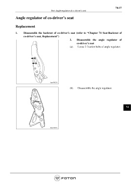 1. Disassemble the backrest of co-driver’s seat (refer to “Chapter 74 Seat-Backrest of