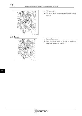 (a). Hold the tilting handle of the cab to release the