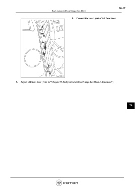 76-17 Body turnover/Door/Cargo box-Door 8. Connect the insert part of left front door. 9. Adjust left front door (refer to “Chapter 76 Body turnover/Door/Cargo box-Door, Adjustment”) 76 Page 1535