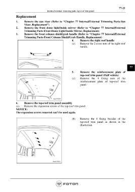 (a). Remove the expansion screws of the top-roof trim panel.