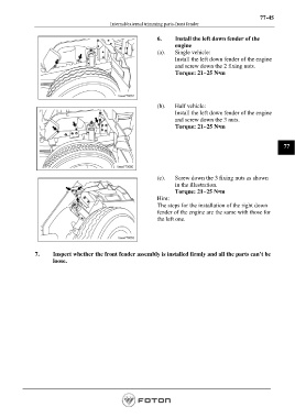 6. Install the left down fender of the