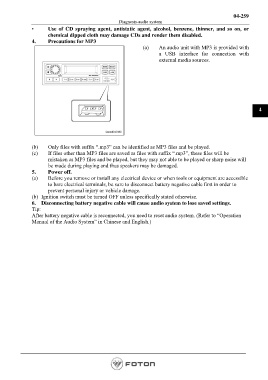 6. Disconnecting battery negative cable will cause audio system to lose saved settings.