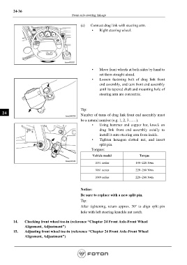 15. Adjusting front wheel toe-in (reference “Chapter 24 Front Axle-Front Wheel