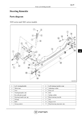 6 Steering knuckle pin cap 16 Right steering knuckle