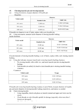 pin and inside diameter of steering knuckle bushing respectively, and replace as needed.