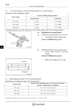 Number of adjusting washers of steering knuckle: ≤ 2 (single side)