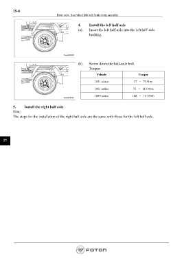 The steps for the installation of the right half axle are the same with those for the left half axle.