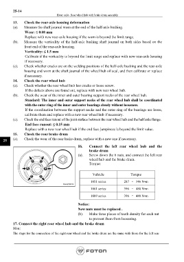 (c). Check the end face runout of the joint surface between the rear wheel hub and the half axle flange.