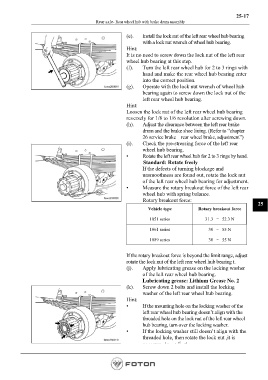 • Rotate the left rear wheel hub for 2 to 3 rings by hand.