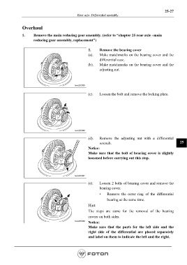 1. Remove the main reducing gear assembly. (refer to “chapter 25 rear axle –main