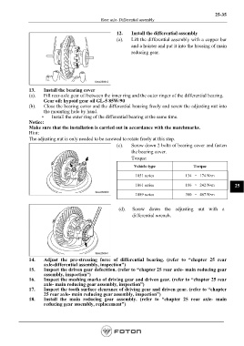 14. Adjust the pre-stressing force of differential bearing. (refer to “chapter 25 rear