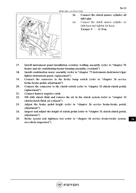 23. Adjust the brake pedal height (refer to “chapter 26 service brake-brake pedal,
