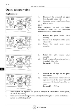6. Brake system airinflation performance test (refer to “chapter 26 service brake-brake