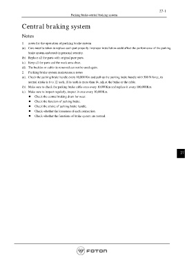 (a). Check the parking brake handle every 10,000 Km and pull up the parking brake handle with 500 N force, its
