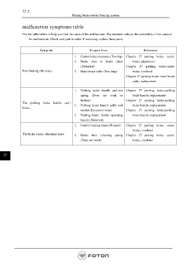 1. Center brake clearance (Too big) Chapter 27 parking brake- center