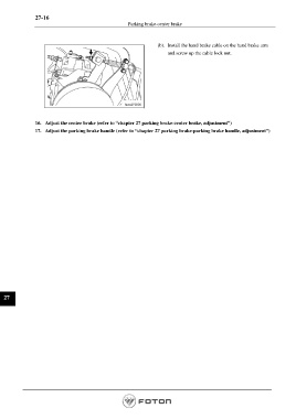 17. Adjust the parking brake handle (refer to “chapter 27 parking brake-parking brake handle, adjustment”)