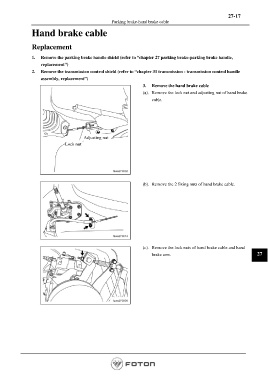 (b). Remove the 2 fixing nuts of hand brake cable.