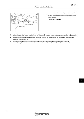 5. Adjust the parking brake handle (refer to “chapter 27 parking brake-parking brake handle, adjustment”)