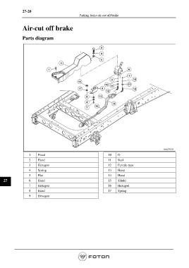 27-20 Parking brake-air-cut off brake Air-cut off brake Parts diagram 1 Fixed 10 O 2 Hand 11 Seal 3 Hexagon 12 Ferrule-type 4 Spring 13 Hand 5 Flat 14 Hand 27 6 Hand 15 Shield 7 Hexagon 16 Hexagon 8 Hand 17 Spring 9 Hexagon Page 842