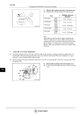 (a). Check the meshing position of the gear with red marks for the gear pair at each gear shift, the middle part of the