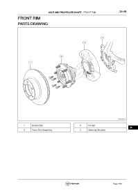 AXLE AND PROPELLER SHAFT - FRONT RIM 34-49 FRONT RIM PARTS DRAWING 1 Brake Disc 3 Fender 34 2 Front Rim Assembly 4 Steering Knuckle Page 1079